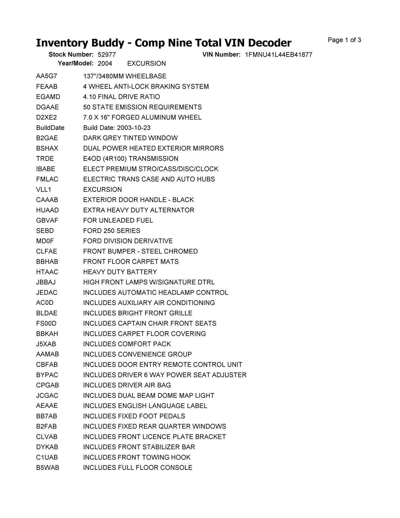 This Ford EXCURSION was purchased from a customer from ELGIN, IL on date 09/25/2025
