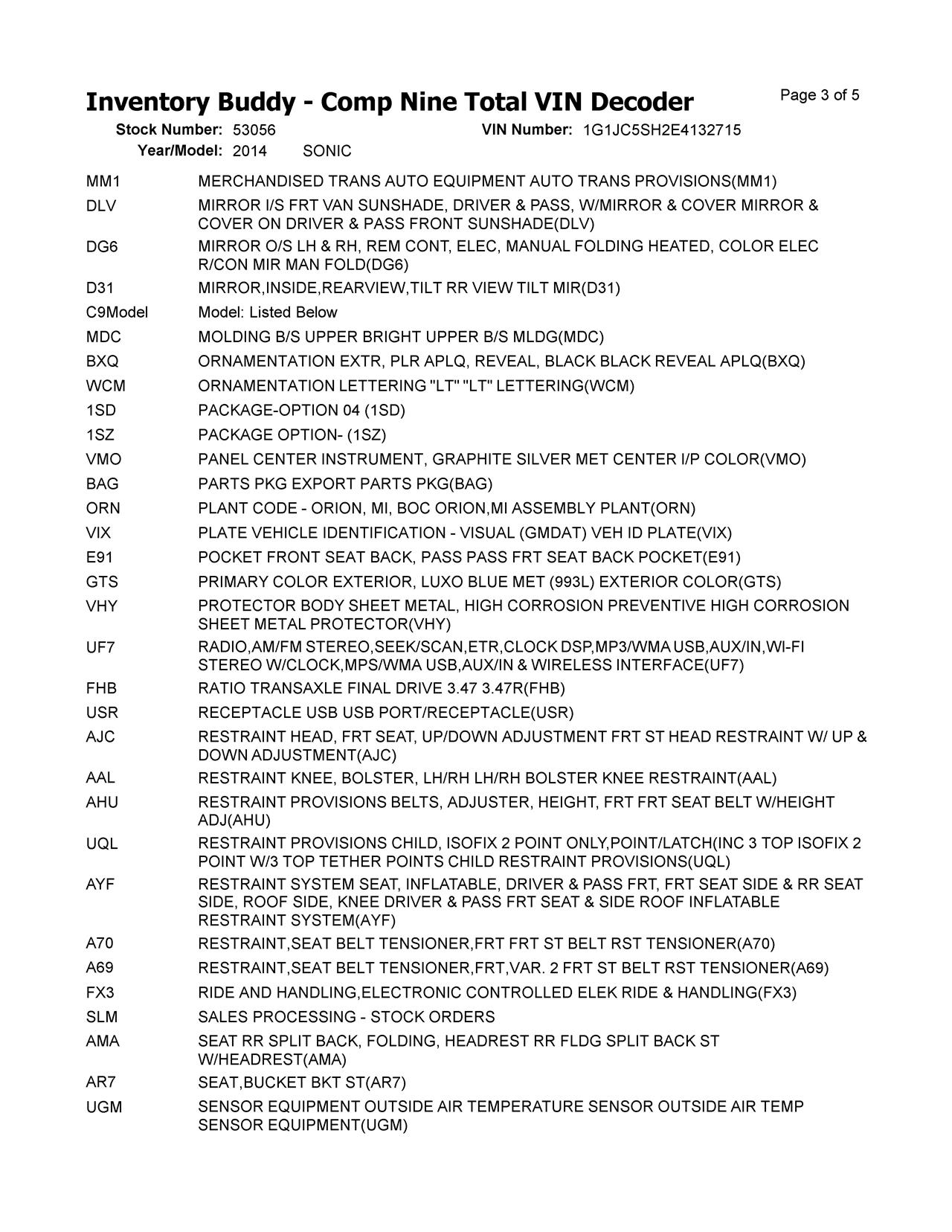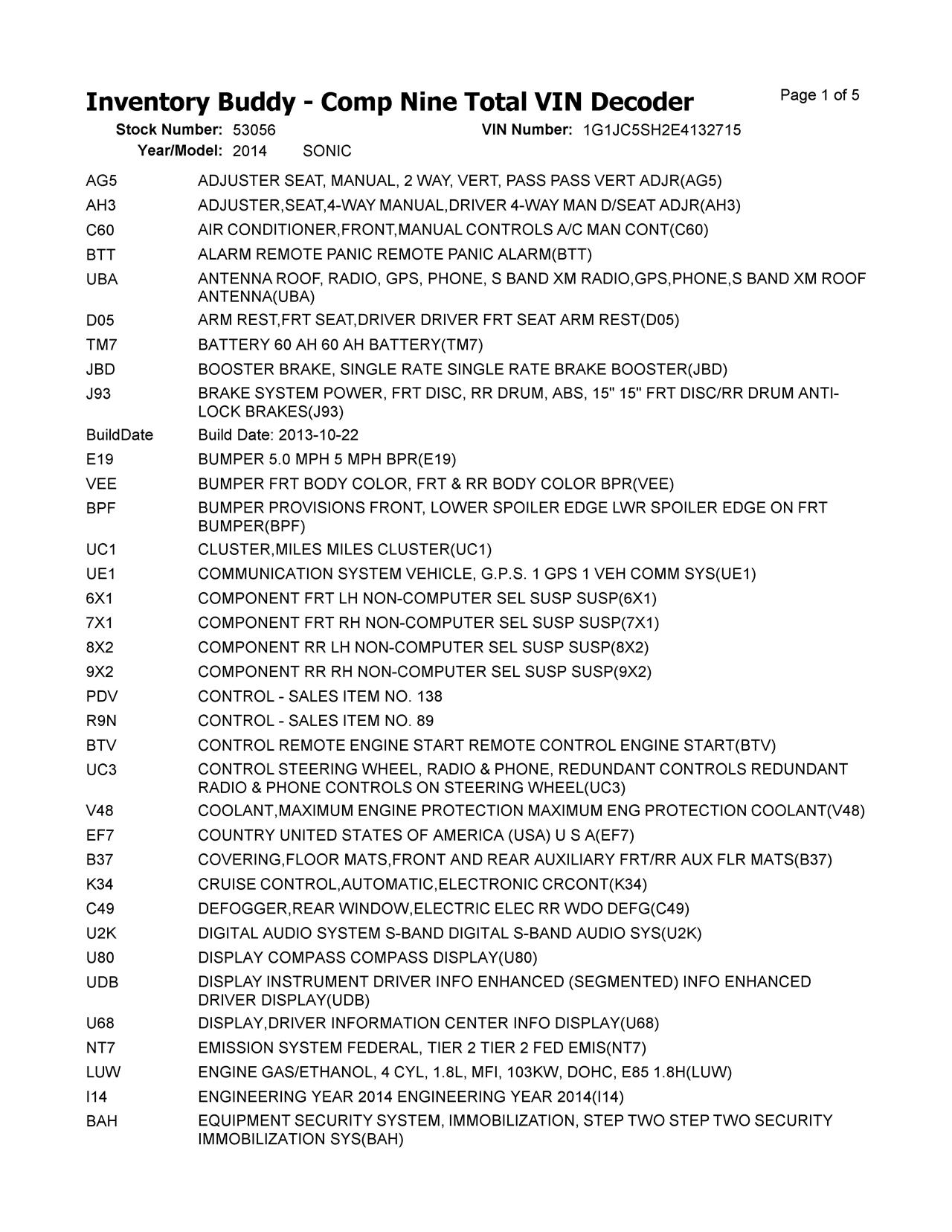 This Chevrolet SONIC was purchased from a customer from LAKEMOOR, IL on date 10/02/2025