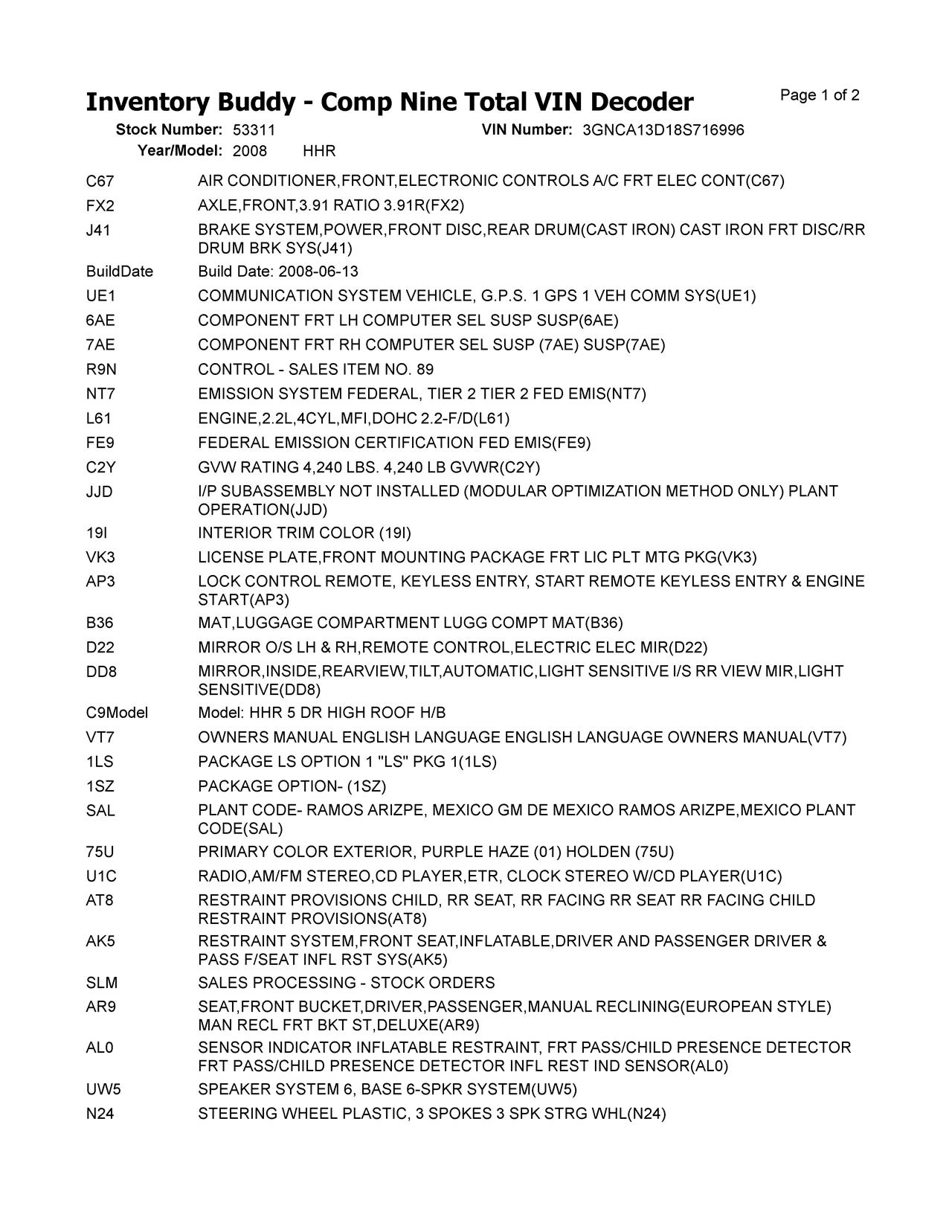 This Chevrolet HHR was purchased from a customer from ELGIN, IL on date 10/22/2025